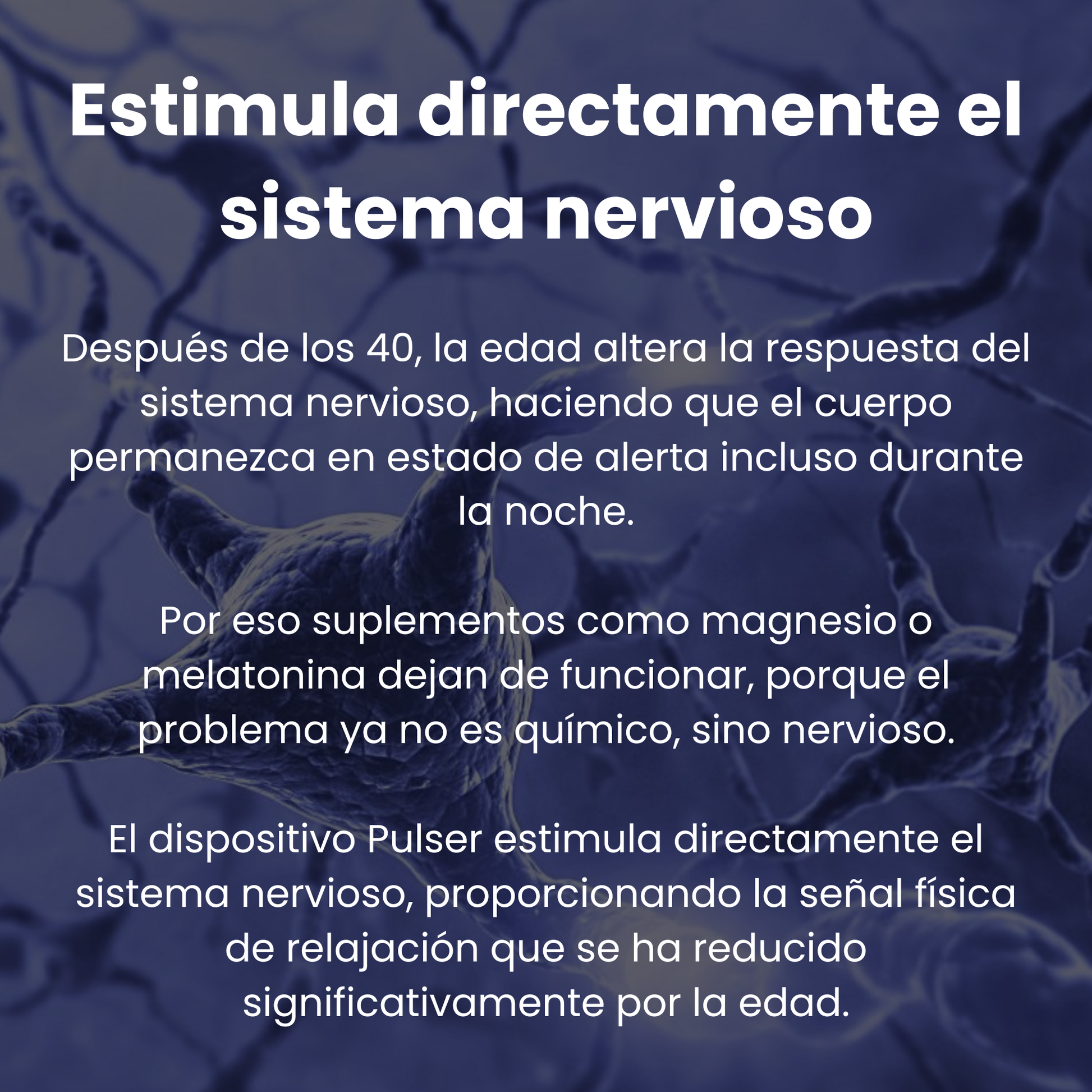 Nuestro Pulser es el dispositivo ideal para quienes buscan mejorar la calidad de su sueño y reducir la ansiedad.
